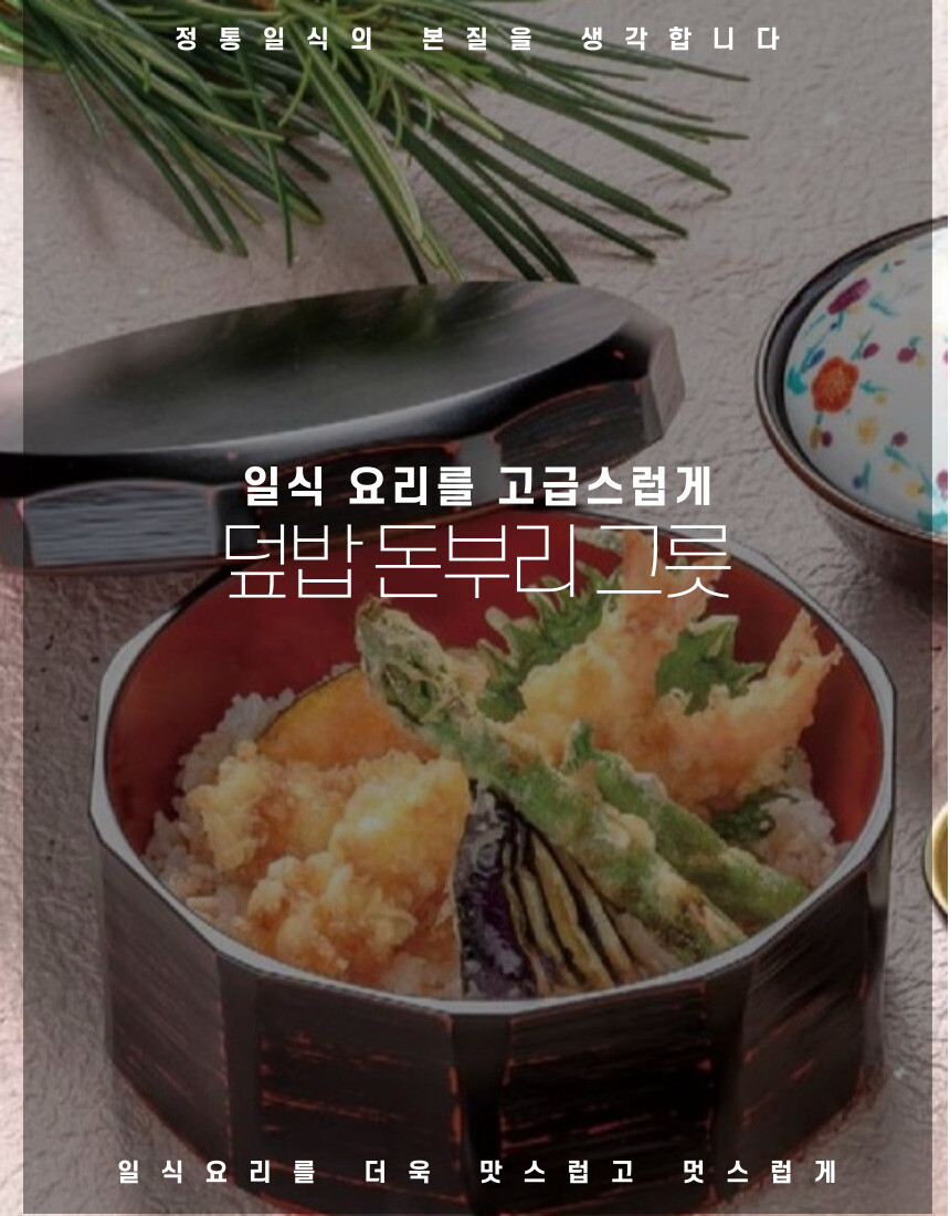 일식 덮밥 히츠마부시 텐동 카이센동/ 원형 돈부리 그릇 - 다크브라운 (6-876-2)